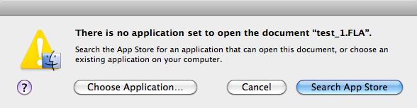 אחד מהחידושים שהגיעו עם עדכון מערכת 10.6.6 הוא חיפוש מובנה אחרי תוכנות שפותחות קבצים מסוגים שונים. לדוגמא: אם אתם מנסים לפתוח קובץ מסוג FLA, ואין לכם אף תוכנה שיכולה לפתוח את הקובץ, המערכת תציע לכם לחפש באפסטור תוכנה מתאימה: