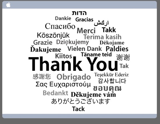 מסתבר שאפל מתקשה קצת עם עברית. משתמש שמילא סקר שביעות רצון על השרות של אפל שמח לגלות שאפל מודה לו גם בעברית, בנוסף לשפות אחרות, רק חבל שמדובר בעברית הפוכה: "הדות" במקום "תודה".
