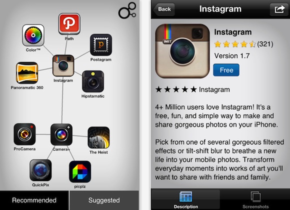 בתור התחלה, אתם צריכים לספק ל-Discovr Apps שם של אפליקציה (אתם יכולים לכתוב, או לספק שם מרשימת אפליקציות נבחרות מתוך האפליקציה). לאחר מכן האפליקציה תגלה לכם אפליקציות דומות / קשורות לאותה אפליקציה, מכאן תוכלו למצוא פרטים (כולל צילומי מסך) על כל אפליקציה (לחיצה כפולה על אייקון האפליקציה), או לבחור אפליקציה (לחיצה על האפליקציה) ולגלות אפליקציות הדומות לה. במילים פשוטות, Discovr Apps יוצרת סוג של מפת מוח של אפליקציות.