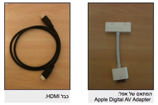 – מתאם של אפל: Apple Digital AV Adapter (המתאם בחנות של אפל).