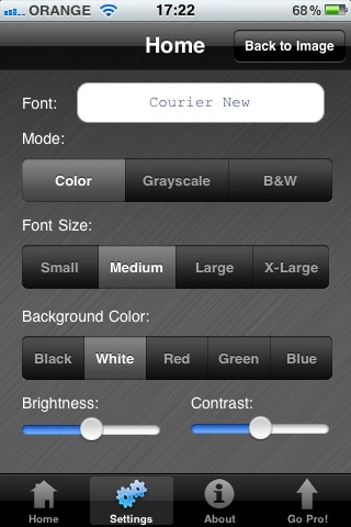אחרי שתבחרו את התמונה בה אתם רוצים לטפל, האפליקציה תפעיל את האפקט על התמונה, לאחר מכן תוכלו לשמור את התמונה בספריית התמונות שלכם. במידה והאפקט לא מדויק מספיק לטעמכם, ניתן לשנות את ההעדפות לגבי גודל האותיות, הפונט, הצבע וכו' (כפתור Settings).