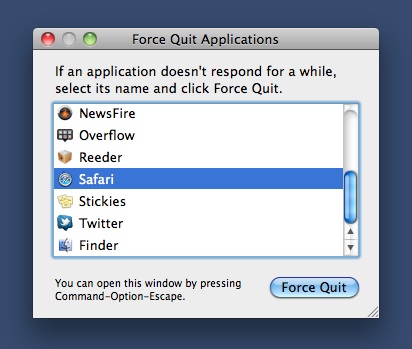 תקועים?, הקיצור הנ"ל מאפשר לכם לסגור תוכנות בכוח (Force Quit). בנוסף, בחירה בפיינדר תאפשר לכם להזניק מחדש את הפיינדר.