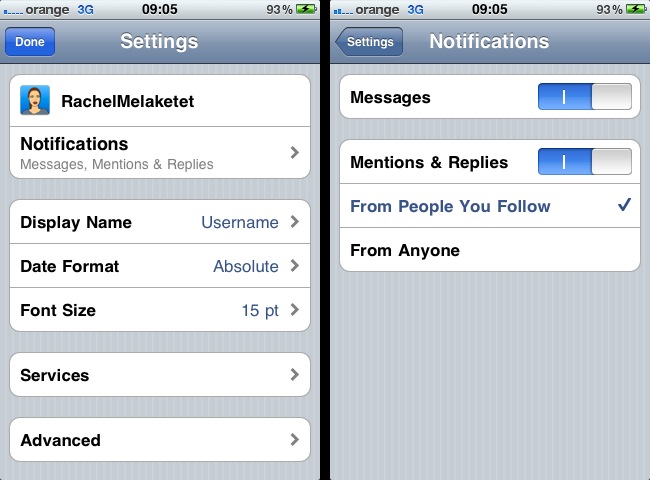 – סנכרון טיימליין / הודעות, באמצעות iCloud, בין מכשירים (בהנחה שגם בהם מותקנת טוויטבוט).