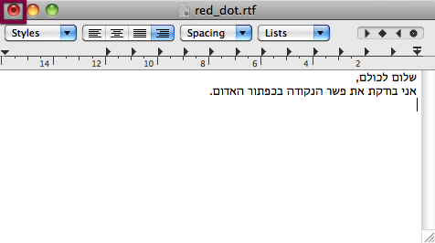 אם אתם רואים נקודה בתוך הכפתור האדום בחלון המסמך, עליו אתם עובדים, כנראה לא שמרתם את השינויים האחרונים שעשיתם.